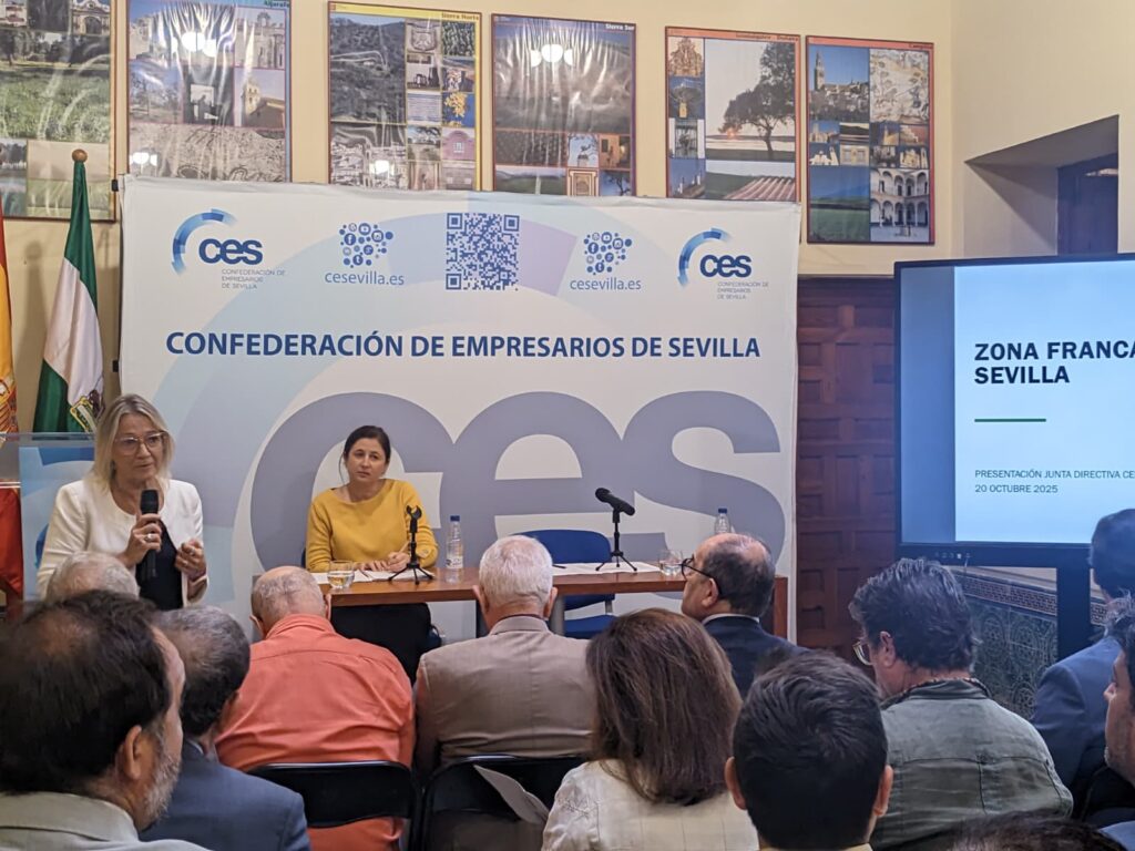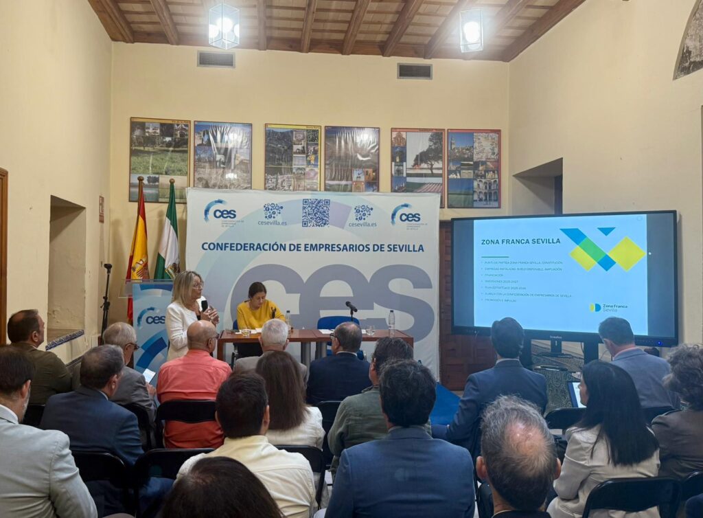 La delegada del Estado para la Zona Franca de Sevilla, Carmen Tovar, y el presidente de la Confederación Empresarial de Sevilla (CES), Miguel Rus, han firmado un acuerdo de colaboración para impulsar la competitividad y el crecimiento del tejido empresarial sevillano.
